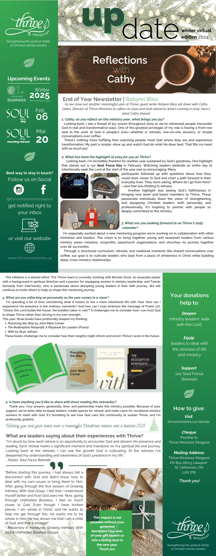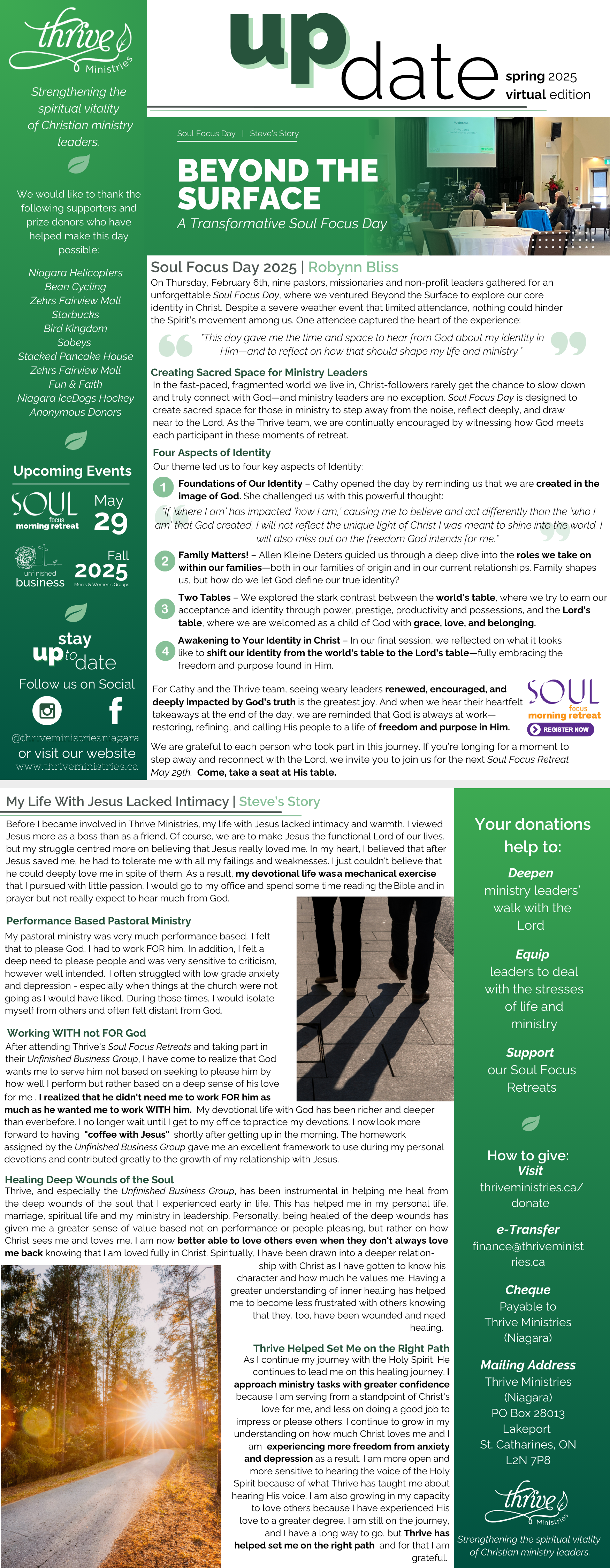 Browse through our newsletters to see how Thrive Ministries has served and supported ministry leaders over the years.
